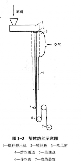 尼龍絲成形工藝之熔體紡絲工藝是切片在螺杆擠出機中熔融後或由連續聚合製成的熔體,送至紡絲箱中的各個紡絲部位,再經紡絲泵定量壓送至紡絲組件,過濾後從噴絲板的毛韁孔中壓出而成為細流,並在紡絲通道中冷卻成形的工藝過程。初生纖維被卷繞成一定形狀的卷裝(對於長絲)或均勻落入盛絲桶中(對於短纖維)。